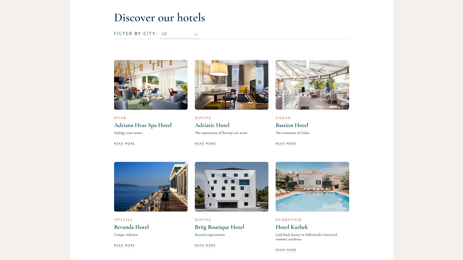 Fabular Agency hired us again for the design of a website dedicated to Croatian tourism. It is a page, that is a collection of hotels that stand out for their uniqueness. Our inspiration for the design came from the beautiful photos of those hotels, their modern decoration and elegance, using the visual identity designed by Maja Bagić Barić.