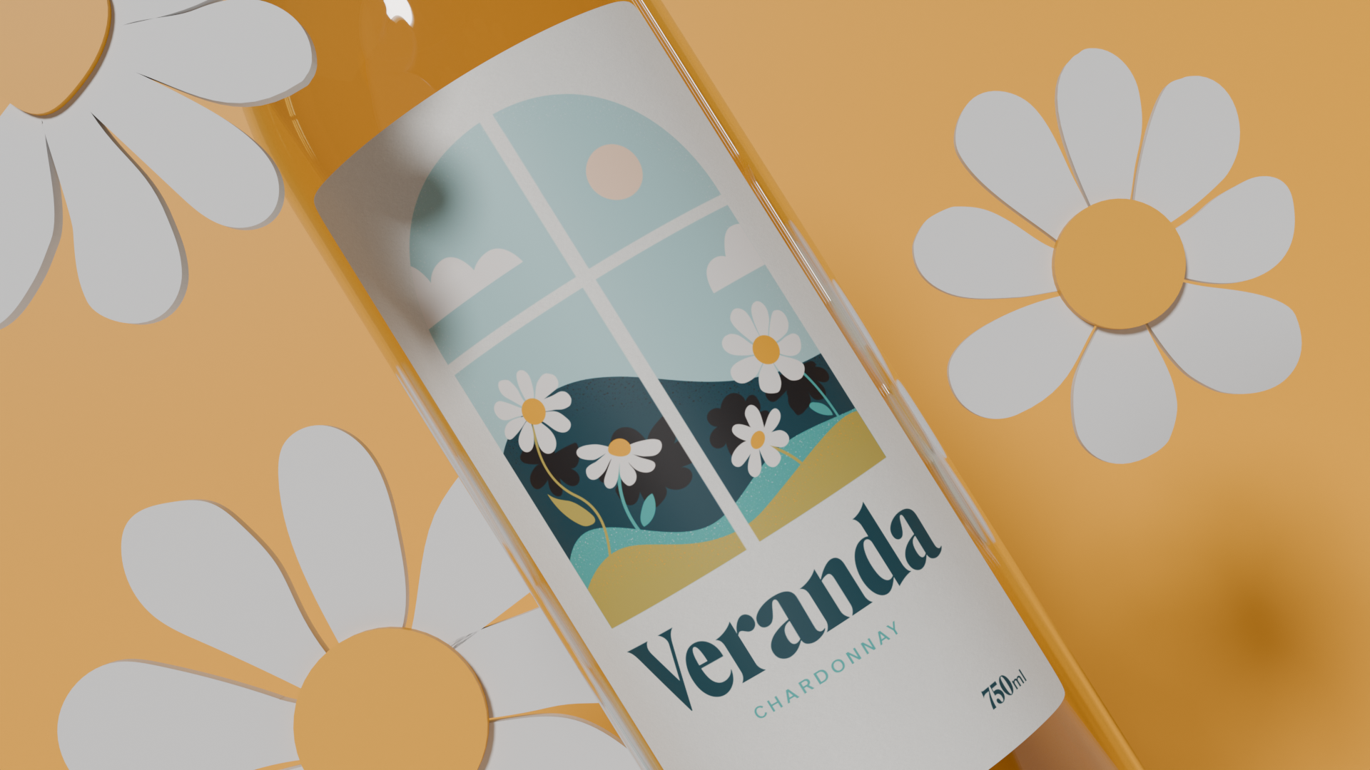 Veranda is a line of accessible wines produced by Royal Hill, intended for retail distribution. The goal was to create a visually compelling label design that reflects the wine's character and maintains a connection to the Royal Hill brand identity. The label design incorporates the signature symbol of Royal Hill – the stag. For the Chardonnay label, the concept centers around the imagery of a veranda window adorned with daisies. This composition evokes a sense of lightness, openness, and nostalgia, complementing the wine's bright and delicate flavor profile.